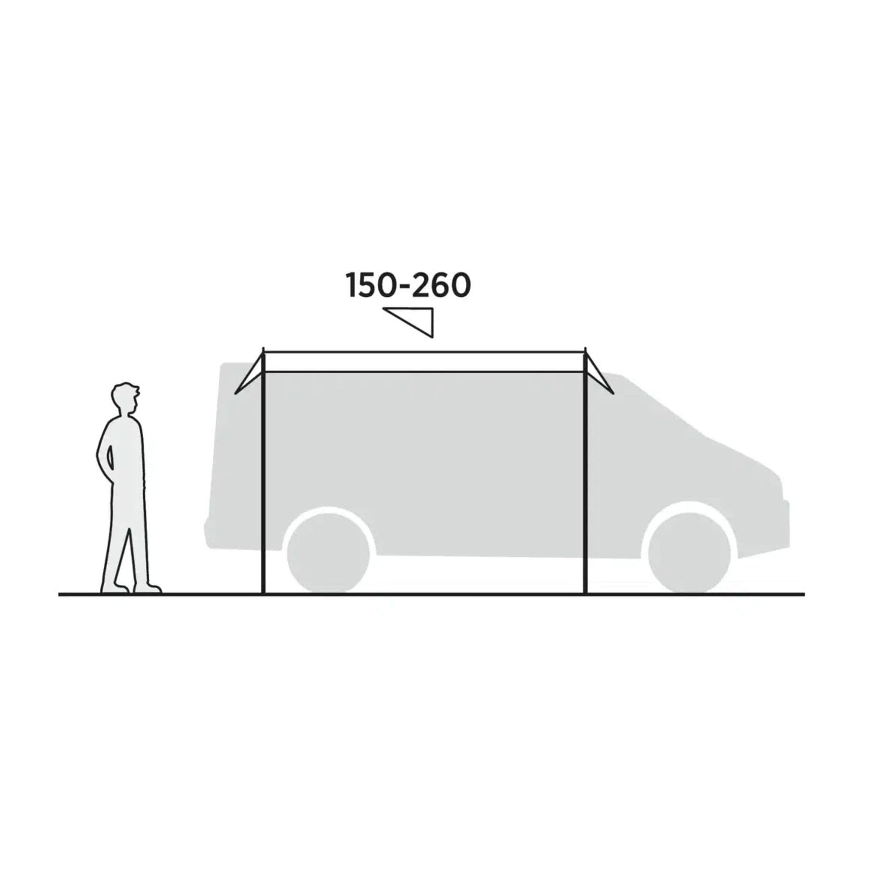 With a generous coverage size of 260cm length Γ 250cm width, the Easy Camp Voss Sun Canopy provides a versatile sheltered space perfect for outdoor cooking, lounging, storing gear, or simply keeping out of the sun. Its fitting height of 150β260cm means it works with a wide range of vans, from compact campers to taller motorhomes.