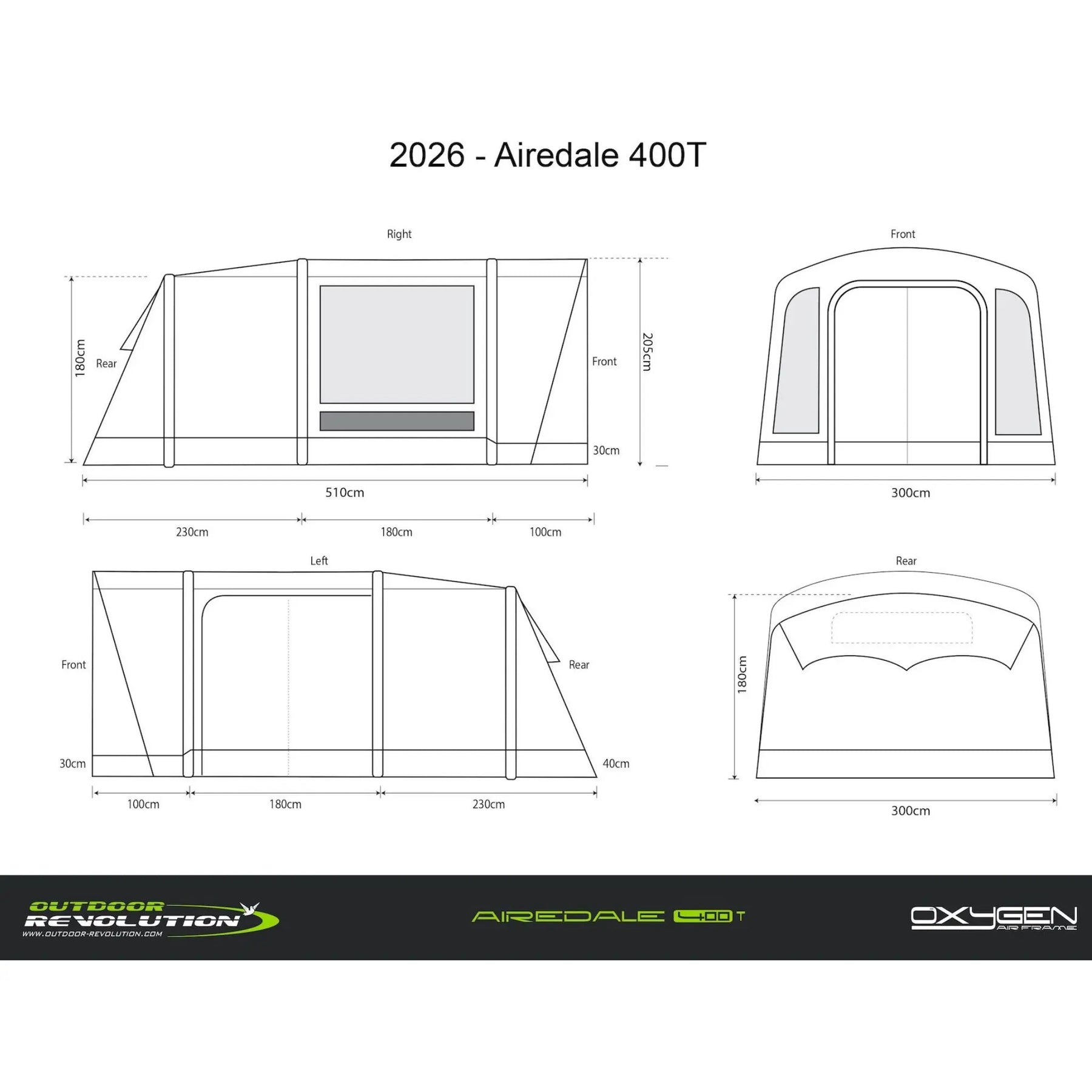 The Outdoor Revolution Airedale 400T Air Including Footprint is built for campers who value comfort and simplicity without sacrificing performance. Its tunnel-style inflatable structure delivers excellent head height and a surprisingly open feel for a 4-person tent, while the clear separation between sleeping and living zones makes everyday campsite life easier.