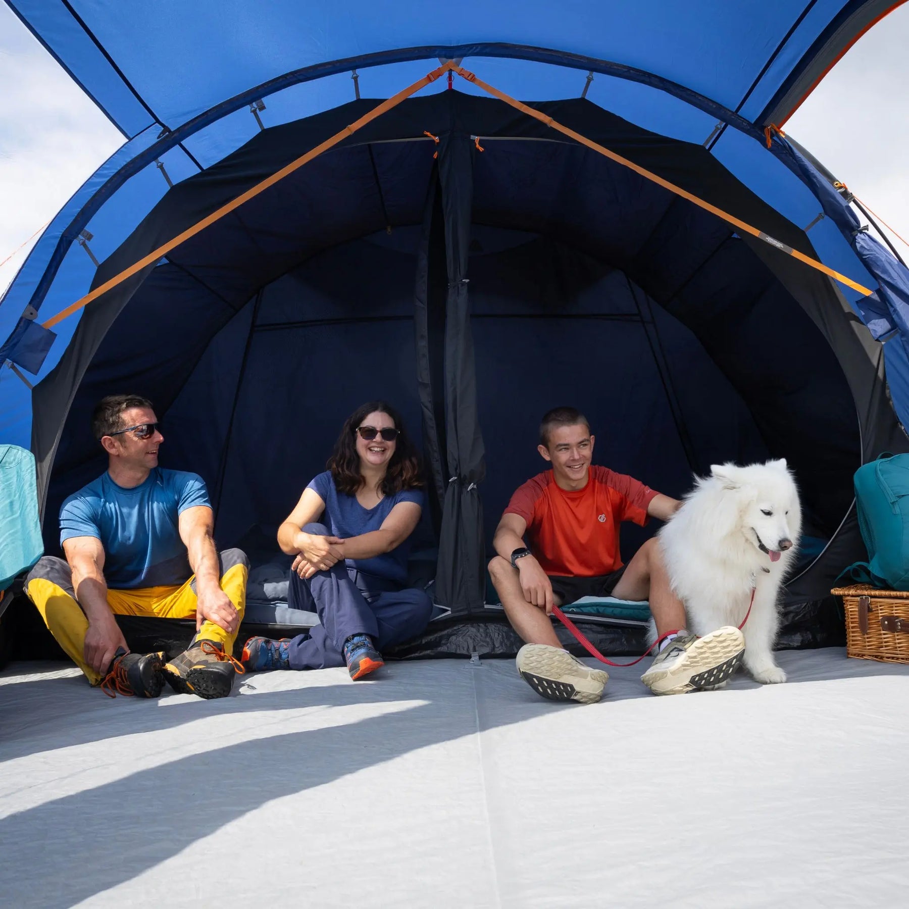 It sits above entry-level festival tents with added comfort features such as sewn-in groundsheet, darkened bedrooms and adjustable ventilation, but below heavier, more technical family tents designed for extended or exposed use. Pitching is simple with colour-coded poles and pegging points, and the tent can be pitched in around 15 minutes by two people.