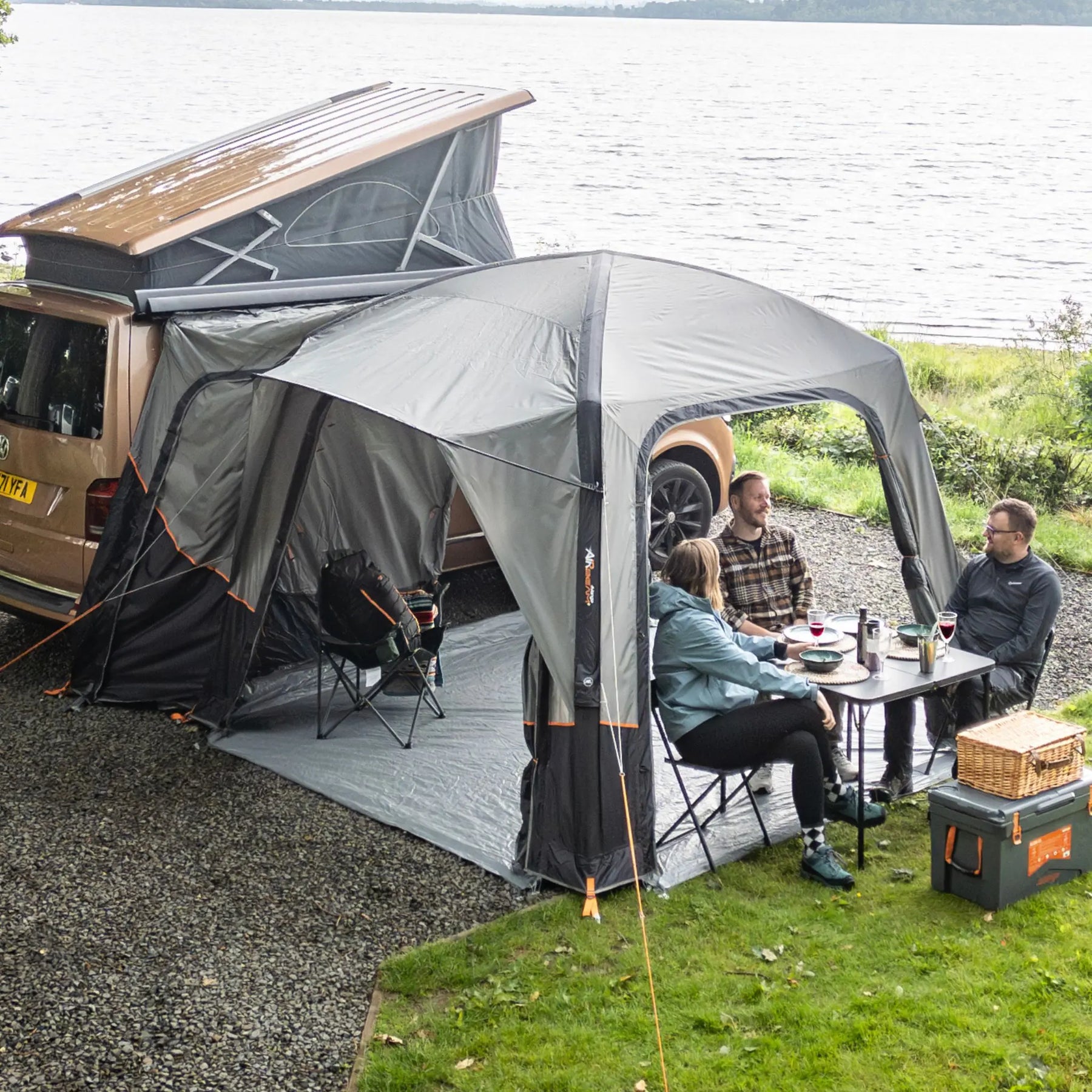 The Vango Quadris Air Low is a spacious and adaptable drive-away awning designed for campervans, offering a light and open living area that’s easy to pitch and comfortable in all conditions. Built with durable 150D Sentinel Active fabric and Vango’s trusted AirBeam® system, it provides a strong, waterproof shelter that’s ready for year-round touring. With large panoramic windows and multiple setup options, the Quadris makes an ideal base for relaxing, socialising, or storing your gear on the campsite.